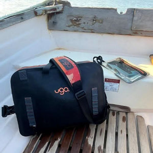 All ugo® bags use dry suit zipper technology to fully seal out water, and include a shoulder strap and zip lube.