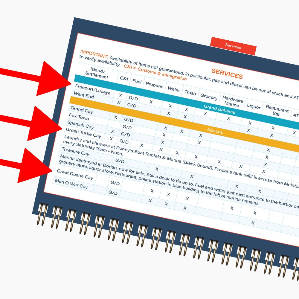"Facilities, fuel/water/pumpout, free docks, anchorages, marinas, inlets, bridge openings/restrictions, currents and depths are listed concisely so there's no need to wade through wordy guides or individual reviews."